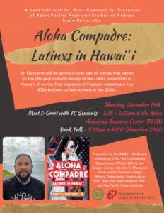 November 14, 2024: Rudy P. Guevarra Jr: Meet and greet with students from 2:15-3:15pm at the Asian American Resource Center, Pomona College and book talk at 4:15pm at Shanahan 2460, Pomona College.