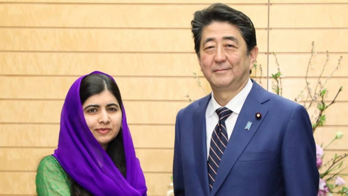Malala Yousafzai, Pakistani activist and women’s rights advocate, with Abe Shinzo, prime minister of Japan. (Cropped for size, and provided by the office of the prime minister of Japan)
