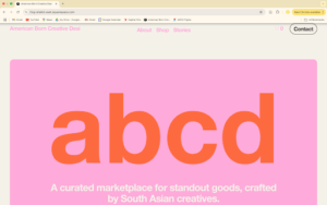 ABCD (American-Born Creative Desi) is a startup building a curated online marketplace to support South Asian Americans in connecting more deeply with their culture. We aim to achieve this by showcasing a diverse range of products, from fashion and art to food, all made in-house by ABCD, other South Asian American-founded brands, or through collaborations between the two. The company name is a renaming and reclaiming of the acronym ABCD, meaning American-Born Confused Desi, originally a derogatory word applied to people of South Asian Descent. Each product on the site features information about the maker, and ABCD offers a community forum and blogs about standout products so that ABCDs can feel a strong affinity to the products, founders, and ultimately to their ABCD identity.