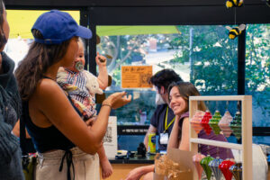 The turnout of artists and visitors this year was diverse, from student creators to parents visiting for the first time to Claremont locals heading over from the Pilgrim Place Festival. Our Hive staff, Reese, Trevor, and Aja, were tabling and facilitating, making sure everyone had what they needed and knew where to go. “It gives [creative] people a reason to come together and take up space,” they explained. They see Maker Market as a powerful introduction to what the Hive is: a creative hub, a community gathering place, and a resource for anyone in the consortium. “For families visiting, it was a great introduction to the Hive. Hopefully, it encourages students to keep coming back, to take a further stake and say, ‘Yes, I’m a user of this space. I want to show it off.’”